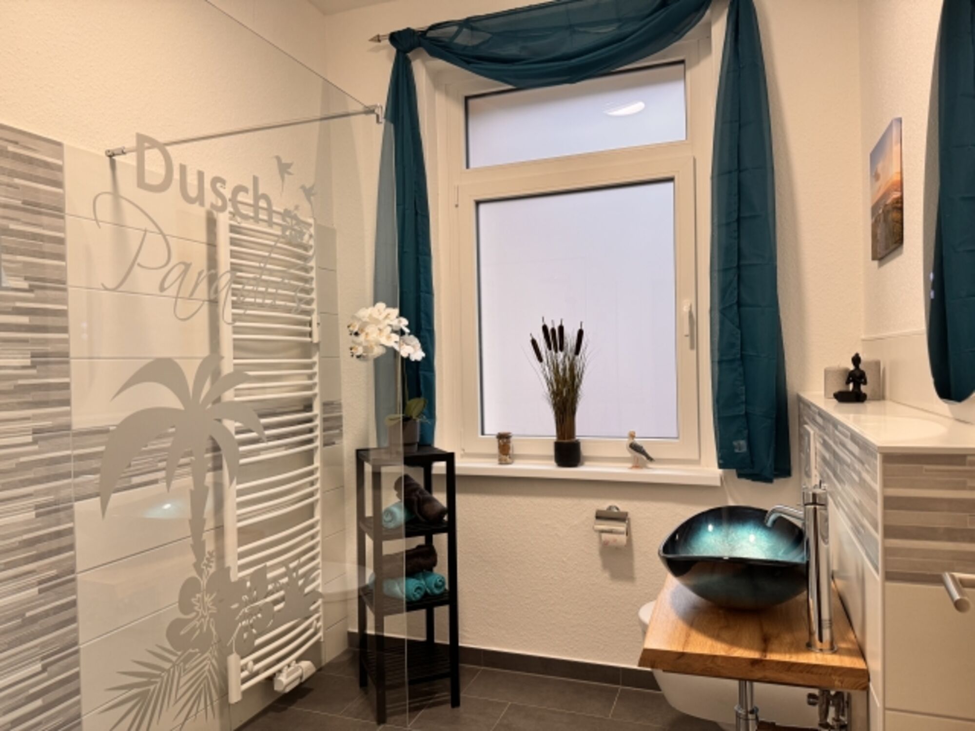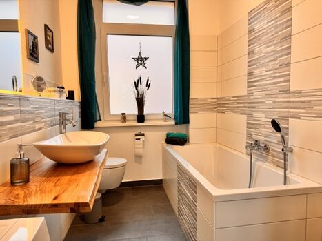 ✔️ 1 Bad mit Badewanne & Waschmaschine, 1 mit bodengleicher Dusche