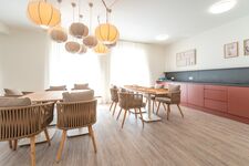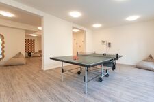 Entspannung pur erwartet Sie im hauseigenen Wellnessbereich unter dem Dach: Zwei Saunen, ein stilvoller Ruheraumund eine Dachterrasse mit Ausblick sorgen für erholsame Momente. Aktive Gäste freuen sich über den kleinen Fitnessraum im Untergeschoss sowie den großzügigen Gemeinschaftsbereich mit Billard, Kicker, Tischtennis und Kinderspielecke – alles kostenfrei nutzbar.