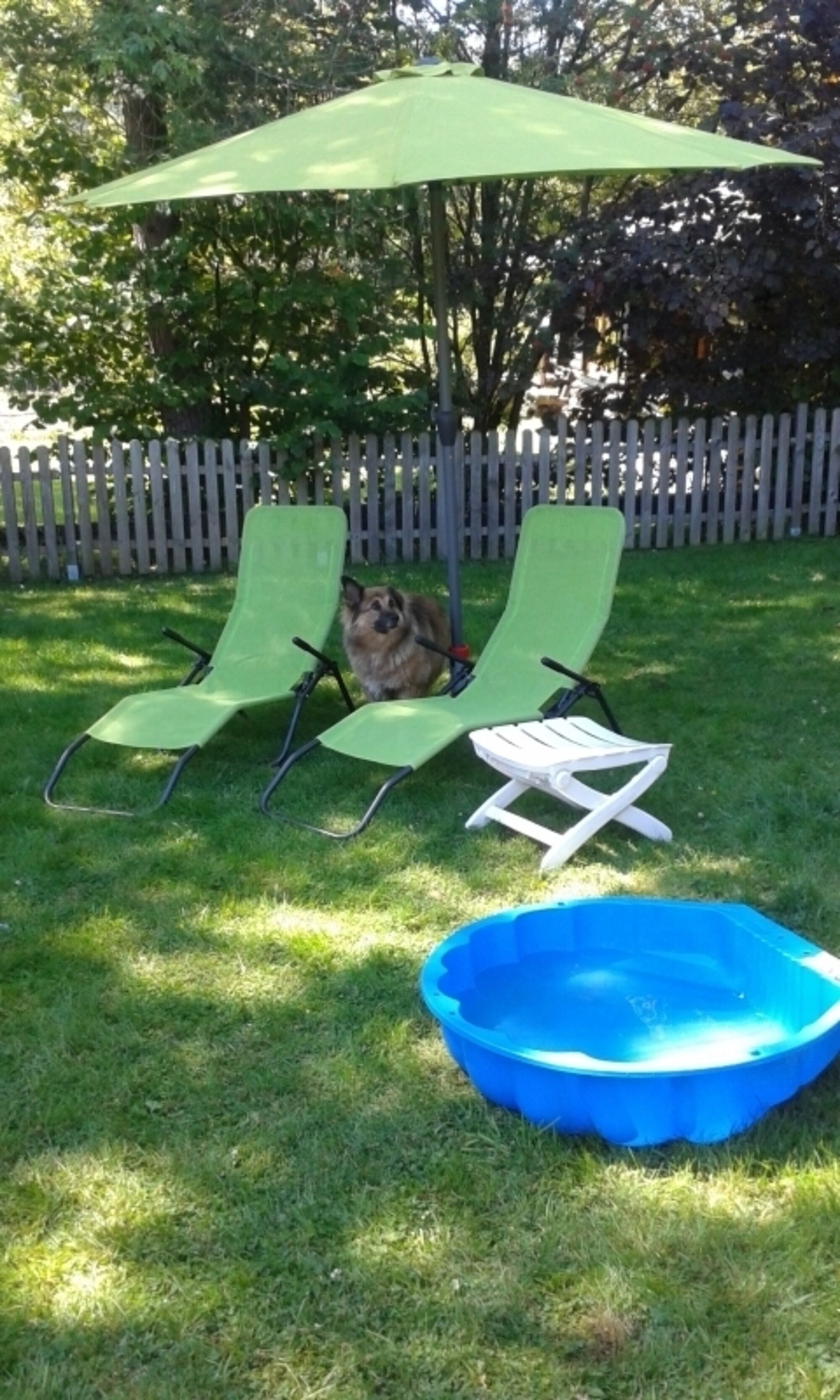 Liegewiese, Gartenmöbel, Kohlegrill, Markise