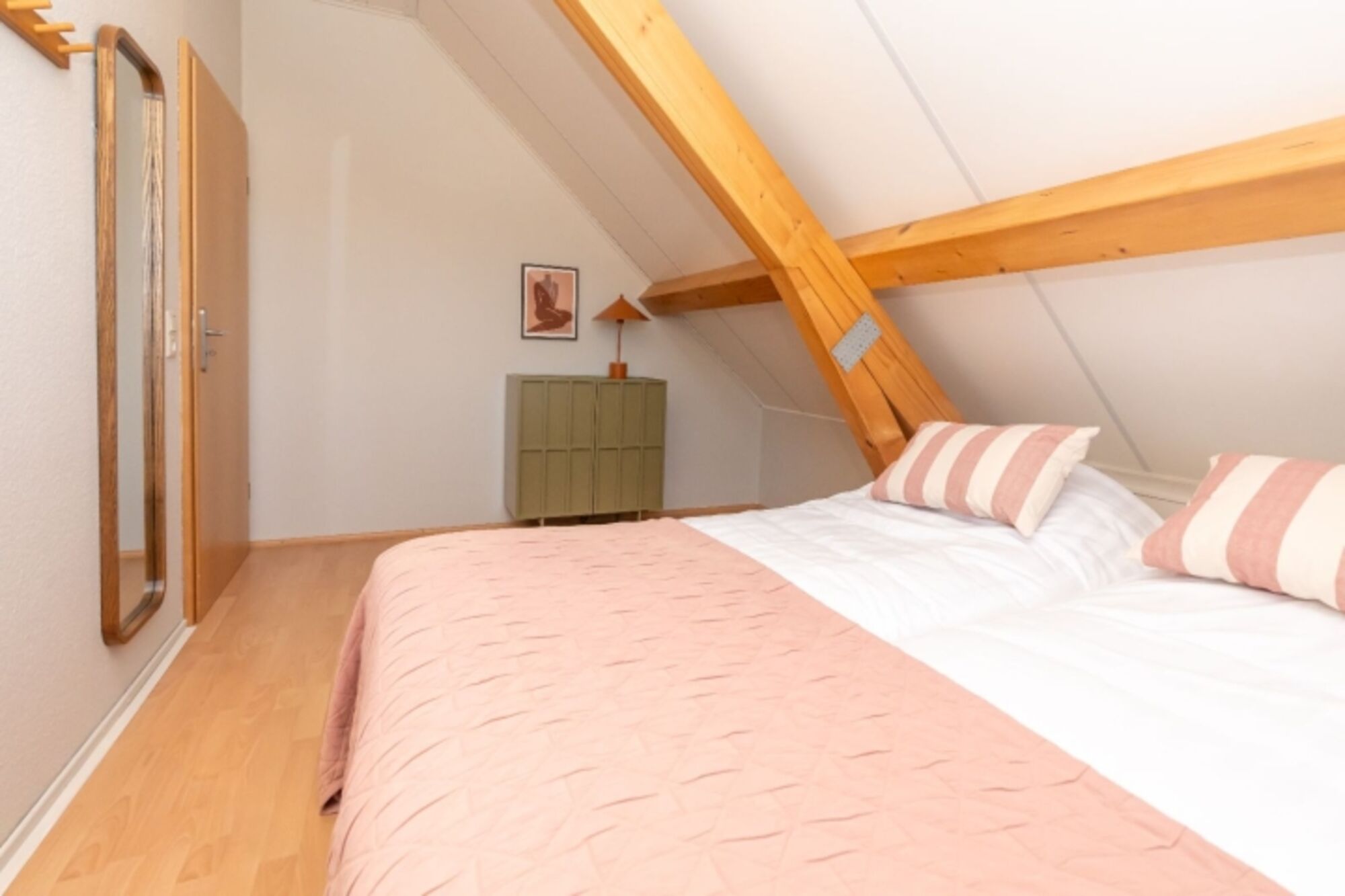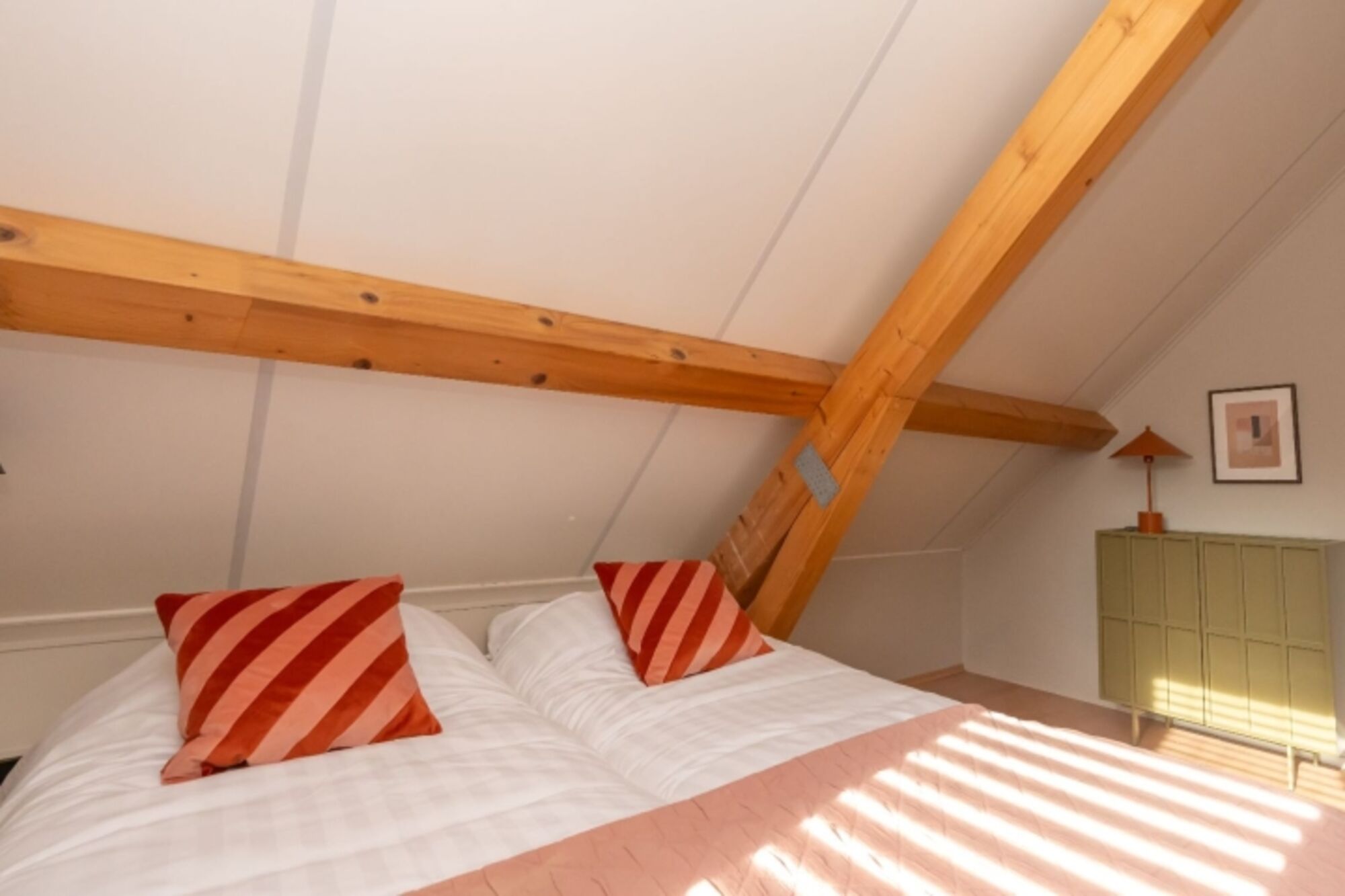 Im ersten Stock sind 3 geräumige Schlafzimmer mit jeweils 2 Luxus Einzelboxspringbetten (Auping), die für eine perfekte Nachtruhe sorgen. Es gibt ausreichend Schränke. Das zweite Badezimmer hat eine Dusche, ein Waschbecken und eine Toilette.
