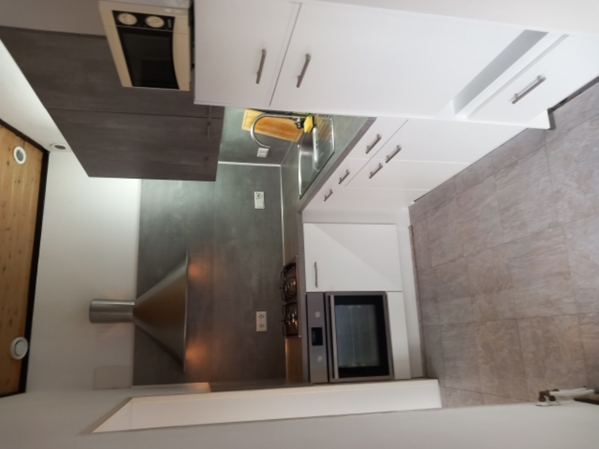 Gasofen / Gasherd, Dunstabzugshaube, Kühlschrank mit Gefrierfach, Gefrierschrank, Kaffeevollautomat, Eierkocher, Küchenmaschine, Korkenzieher / Flaschenöffner, Gewürze (Salz, Pfeffer, Zucker), Öl / Essig, Geschirrhandtücher, Mülltüten