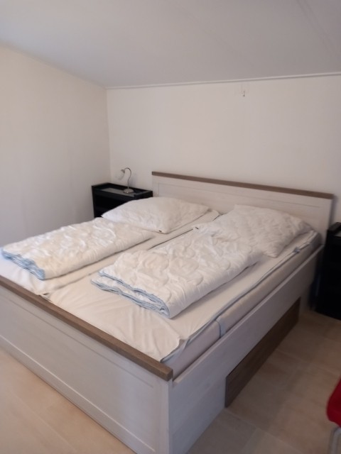 Großes freistehendes Ferienhaus auf einen 750m² Grundstück! Das Haus hat 3 Schlafzimmer, 2 Zimmer mit Doppelbetten 180 x200 cm und ein Kinderzimmer mit Hochbett 2x( 90 x 200 cm) . Wir haben zwei Bäder eines mit Dusche und eins mit Badewanne, wo auch die Waschmaschine steht. Im Wohnzimmer gibt es ein großes Ecksofa und ein 2,5 Sofa ,alles in Leder! Ein 9 KW Specksteinofen sorgt im Winter zusätzlich für Wärme, im Essbereich steht ein großer Tisch mit 6 Eichenstühlen. Die Küche ist mit allen Geräten ausgestattet wie Spülmaschine, Kaffeemaschine, Wasserkocher,Eierkocher . Im Hauswirtschaftsraum steht eine große Kühl - Gefrierkombination. Es gibt im Garten Liegestühle und eine Sitzgarnitur ein Gartenhaus mit Weber Grill und genug Platz für Ihre E-bikes.