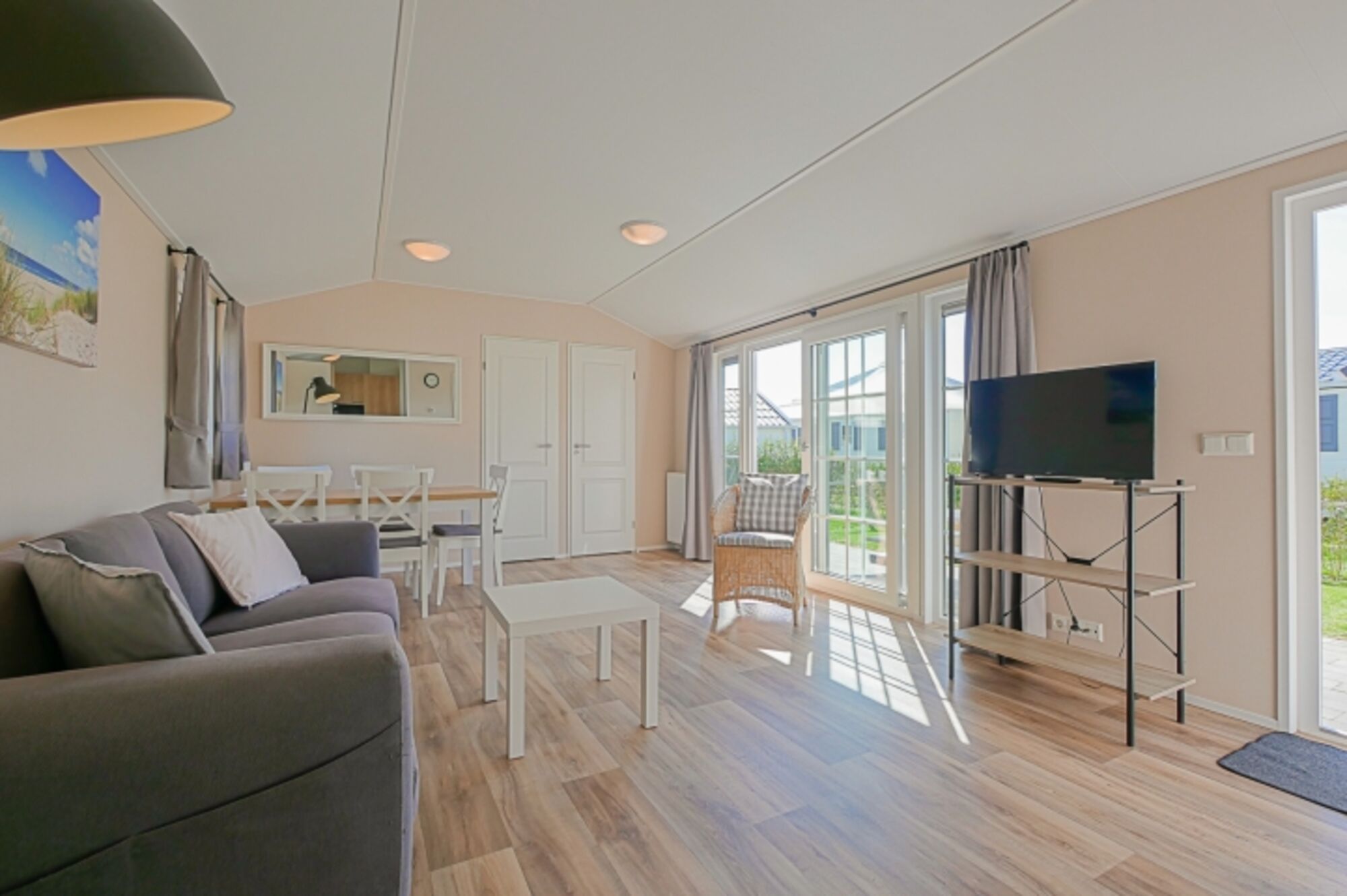 Am Rande des charmanten Küstendorfs Callantsoog, nur zehn Gehminuten vom Strand entfernt, liegt der ruhig gelegene Chalet Park Luttikduin – ein idealer Ort für einen entspannten Urlaub inmitten der Natur. Die modernen Chalets sind vollständig ausgestattet und bieten Platz für bis zu fünf Personen. Jedes Chalet verfügt über ein gemütliches Wohnzimmer mit Sitzecke, eine voll ausgestattete Küche, zwei Schlafzimmer – eines mit Doppelbett und eines mit Etagen- und Einzelbett – sowie eine Terrasse mit Loungemöbeln und einen eingezäunten Garten. Extras wie eine Waschmaschine, ein Gartenhaus und ein Bollerwagen sorgen für zusätzlichen Komfort während Ihres Aufenthalts.