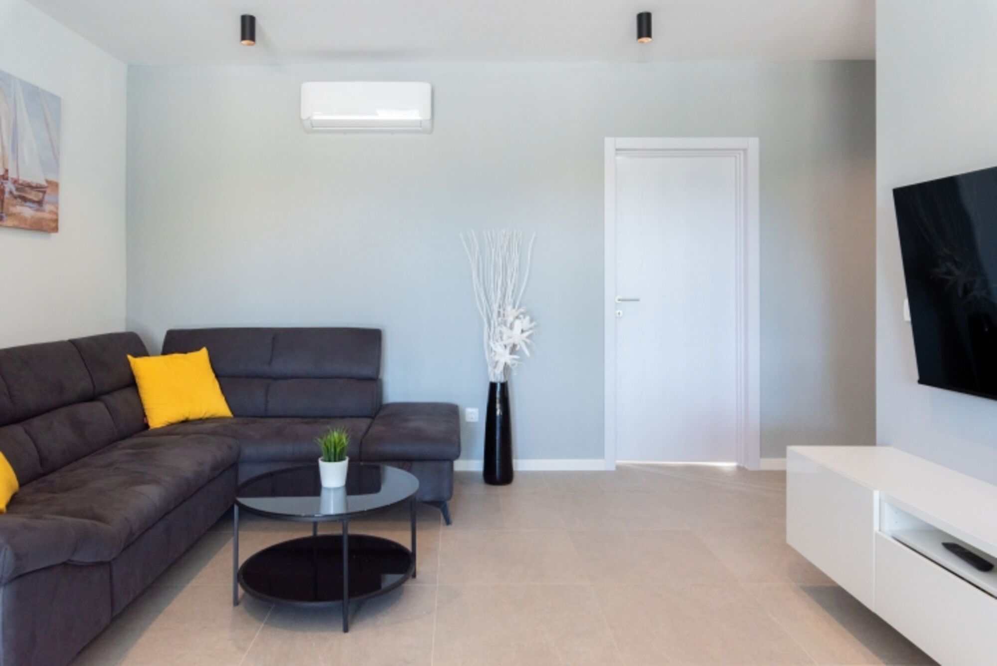 Villa Lotta ist ein modernes Ferienhaus im Ort Brgod, ideal für einen entspannten Aufenthalt in Istrien. Es bietet Platz für 4 + 2 Personen und verfügt über zwei elegant eingerichtete Schlafzimmer sowie zwei Badezimmer. Ein zusätzlicher Schlafplatz befindet sich im Wohnzimmer. Alle Zimmer sind mit Klimaanlage ausgestattet und verfügen über Fenster mit Fliegengittern für maximalen Komfort.