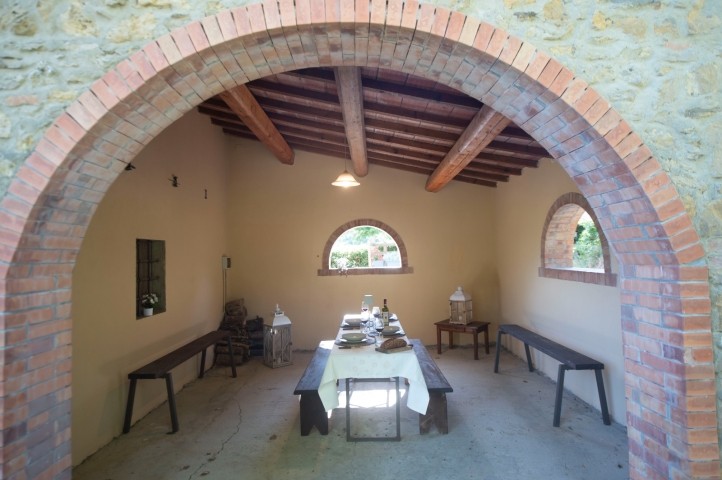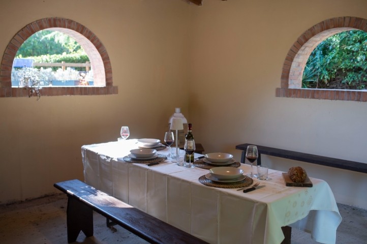 Im Außenbereich erwartet Sie ein weitläufiger, komplett eingezäunter Garten voller Farben und mediterraner Düfte – ideal, um im Schatten der alten Eiche zu entspannen, Mahlzeiten im Freien zu genießen oder ein erfrischendes Bad im privaten Pool zu nehmen. Ein Grill und ein gemütlicher Essbereich im Freien sorgen für gesellige Abende in der stimmungsvollen toskanischen Landschaft.