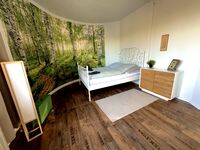 Sehr gemütlicher, warmer Raum mit persönlicher Atmosphäre, Viele liebevoll ausgewählte Requisiten & Deko-Elemente Umfangreiche Büchersammlung zum Stöbern & Entspannen, Großer Spiegel als stilvolles Raum-Highlight Doppelbett 1,80 x 2,00m, Spiegel, Leselampe am Bett, Fliegengitter