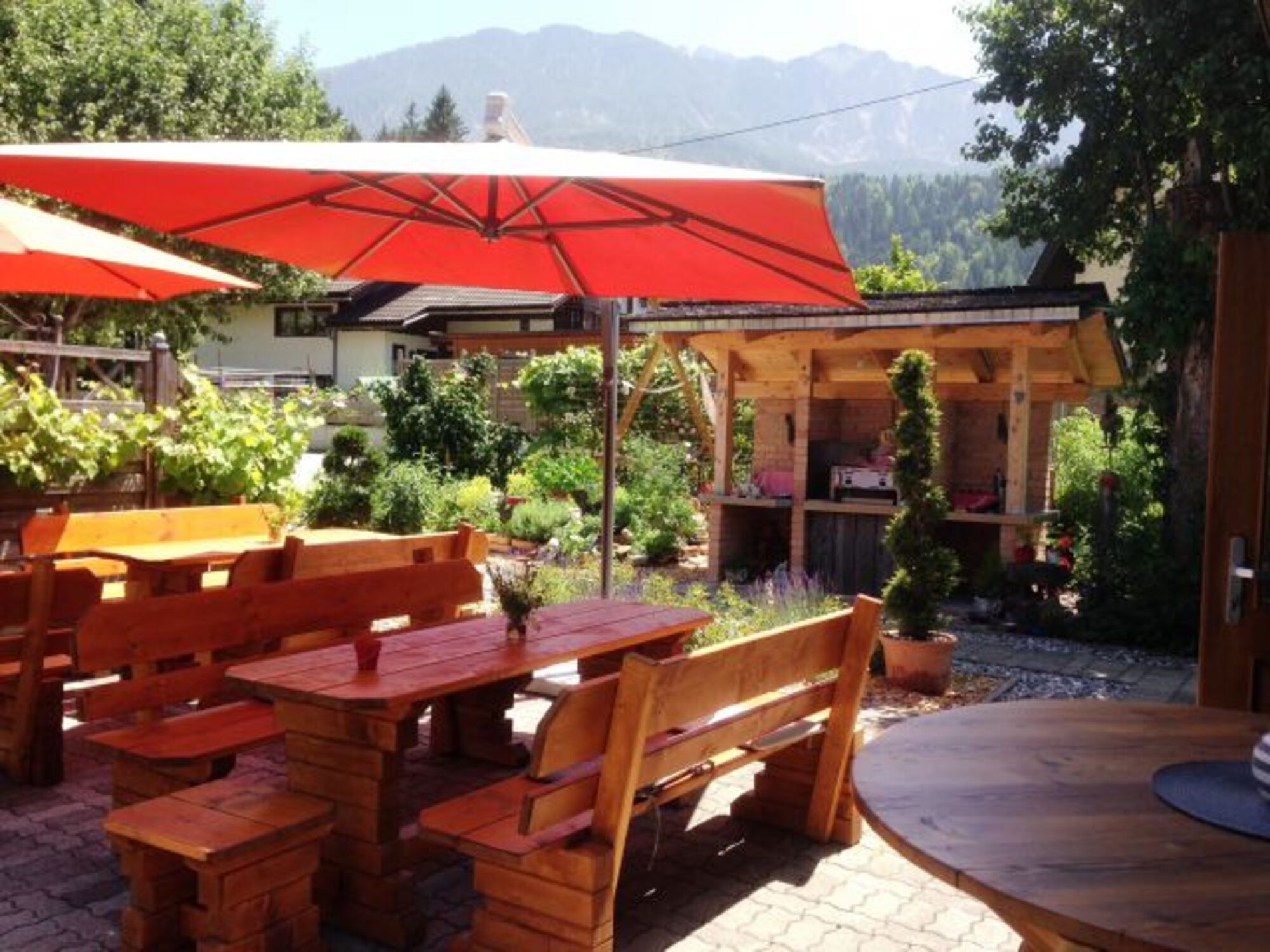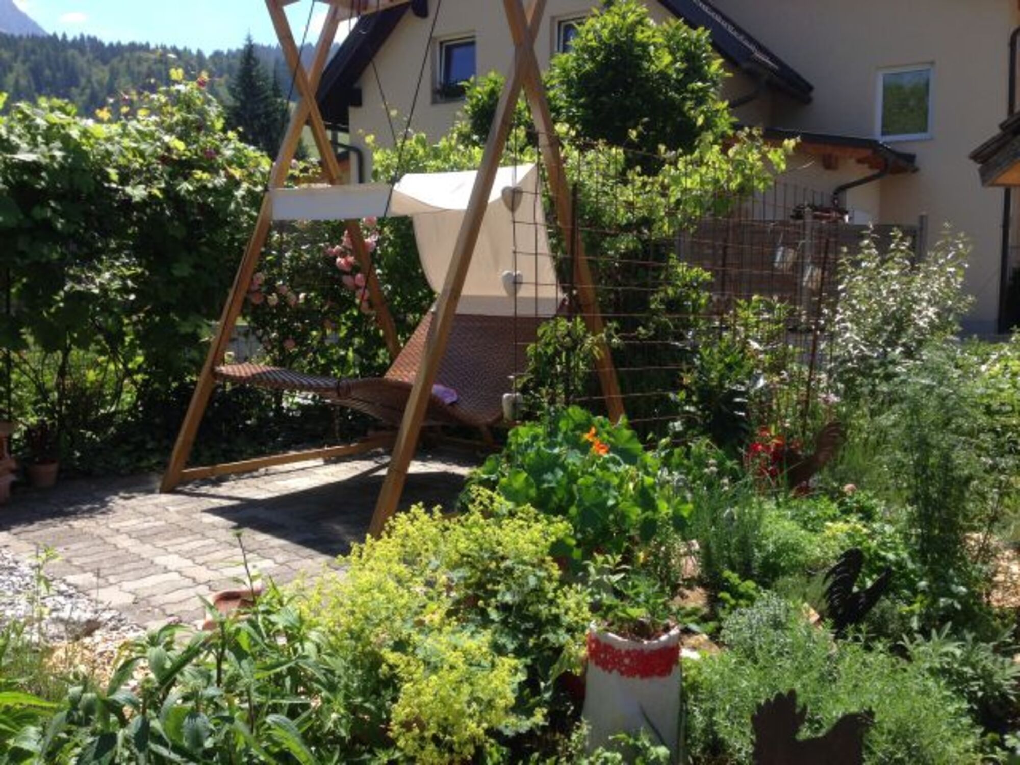 unser schön angelegter Hofgarten lädt Sie zum Entspannen ein. Viele Ruheplätze vorhanden. Grillplatz und Sonennterrasse Gemüsegarten mit vielen Kräutern