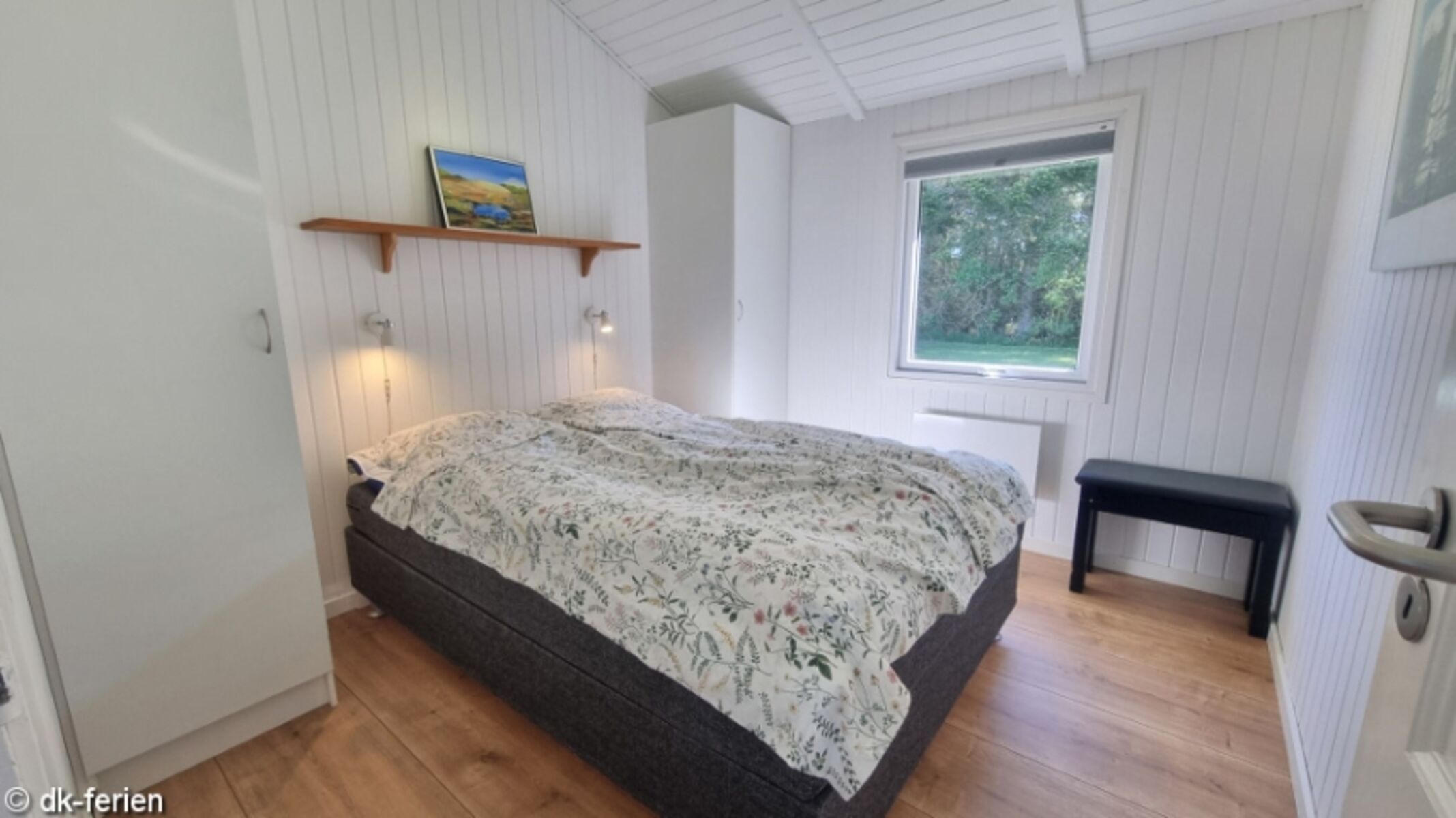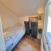 Vier Schlafzimmer stehen dir für ruhige Nächte nach langen Unternehmungen zur Verfügung. Drei Zimmer sind mit Doppelbetten ausgestattet, das vierte verfügt über ein Etagenbett für zwei Personen. Auf dem offenen Schlafboden (Hems) warten außerdem zwei weitere Schlafplätze auf Matratzen – vermietet wird das Haus jedoch nur an maximal acht Personen. Zwei Badezimmer mit Dusche und WC runden das Raumangebot ab.