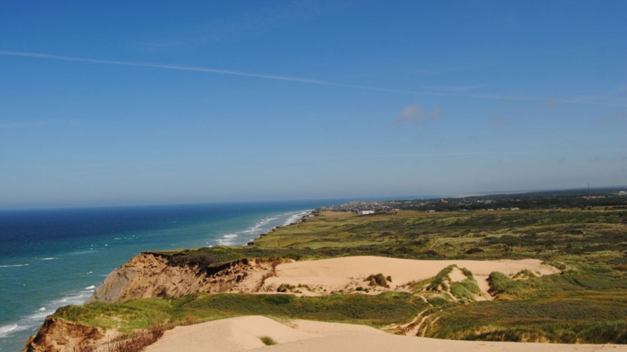 Die Küste rund um Lønstrup ist besonders eindrucksvoll. Die Steilküste bietet großartige Ausblicke, und der breite, feine Sandstrand mit seinem klaren Wasser liegt direkt unterhalb – perfekt für entspannte Tage am Meer. Der Strand ist autofrei, sodass du hier ganz in Ruhe baden, spielen oder spazieren kannst. Gleichzeitig ist er ideal für einen Urlaub mit Hund: viel Platz, weicher Sand und lange Abschnitte zum Laufen machen jeden Gassigang zum Erlebnis. In der offenen Natur rund um Lønstrup begegnest du häufig Rehen, Hasen und verschiedenen Vogelarten, und auch die landschaftlich schönen Wege bieten zahlreiche Möglichkeiten für ausgedehnte Spaziergänge.