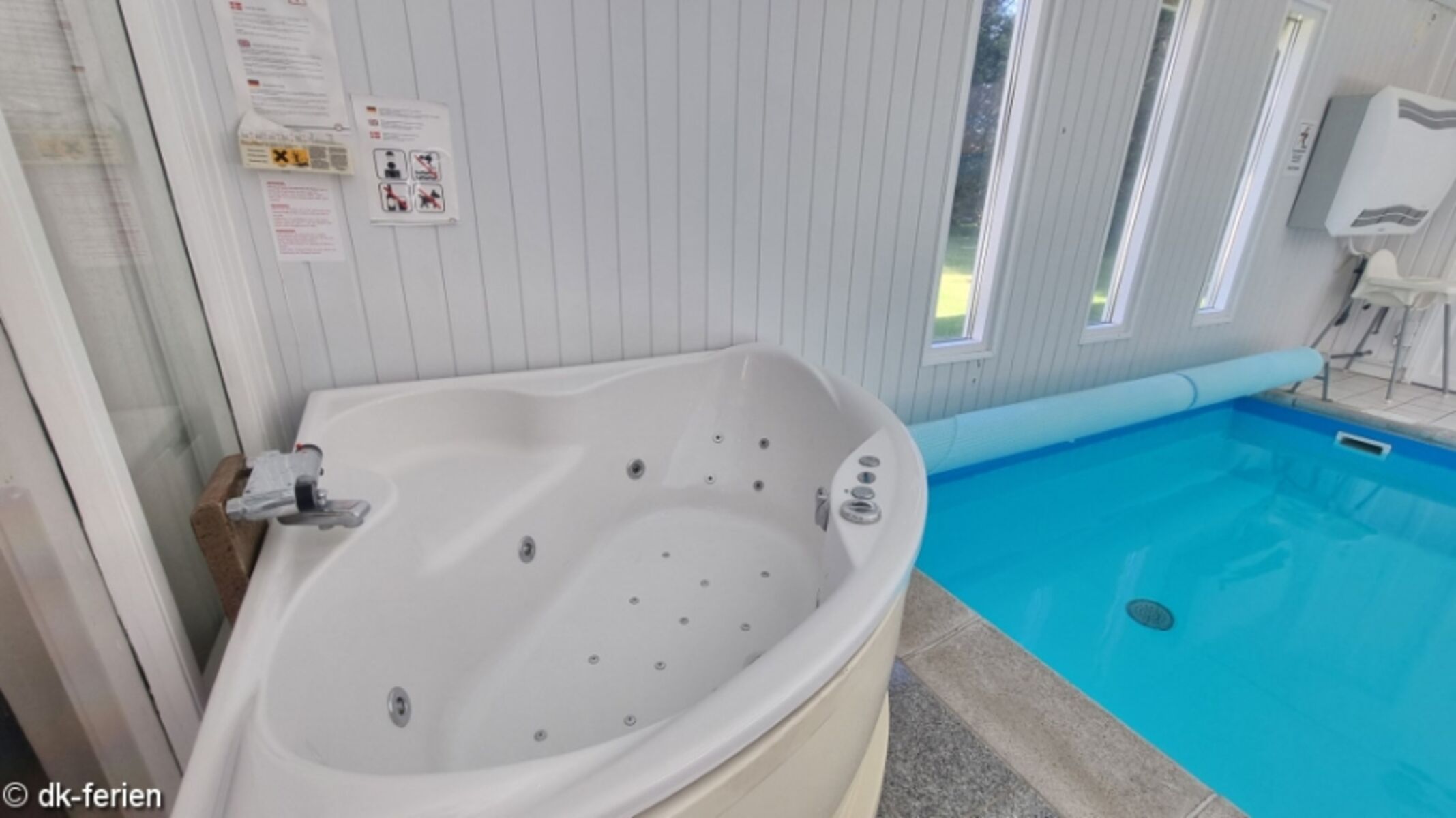 Exklusives Pool-Ferienhaus mit Jakuzzi auf der eingezäunten Terrasse