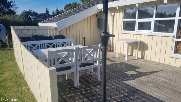 Ganz nah zum Sandstrand & doppekt eingezäunt: Terrasse und Grundstück