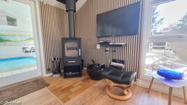 Im kombinierten Wohn- und Essbereich findest du eine gemütliche Sofaecke für entspannte Stunden bei einem guten Buch oder Film, während der Ofen für wohlige Wärme sorgt. Und falls du im Urlaub trotzdem online bleiben möchtest, hast du dank WLAN jederzeit Zugriff auf Nachrichten oder Streaming. Am Esstisch kannst du gemeinsam essen oder gesellige Spieleabende verbringen. Die offene Küche ist gut ausgestattet, sodass du hier problemlos leckere Gerichte zubereiten kannst – oder du gönnst dir ein Essen im Michelin-Restaurant von 2023, das nur 900 Meter entfernt liegt.