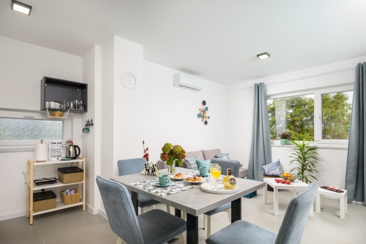 Die Umgebung bietet zahlreiche Aktivitäten – Spaziergänge und Radtouren durch die malerische istrische Landschaft, Erkundung der nahegelegenen Strände, Besuche von lokalen Märkten und kulturellen Sehenswürdigkeiten. Weinliebhaber können nahegelegene Weingüter besuchen, und Feinschmecker haben die Möglichkeit, traditionelle Gerichte in den Restaurants zu probieren.