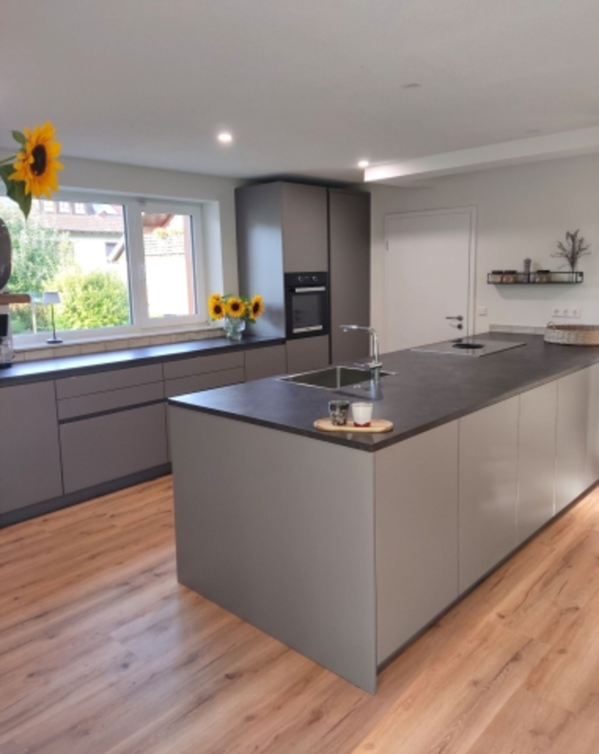 Cerankochfeld, Induktionsherd, Gefrierschrank, Nespresso-Automat, Mixer, Korkenzieher / Flaschenöffner, Gewürze (Salz, Pfeffer, Zucker), Öl / Essig, Geschirrhandtücher, Mülltüten, Essplatz in der Küche