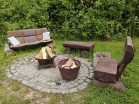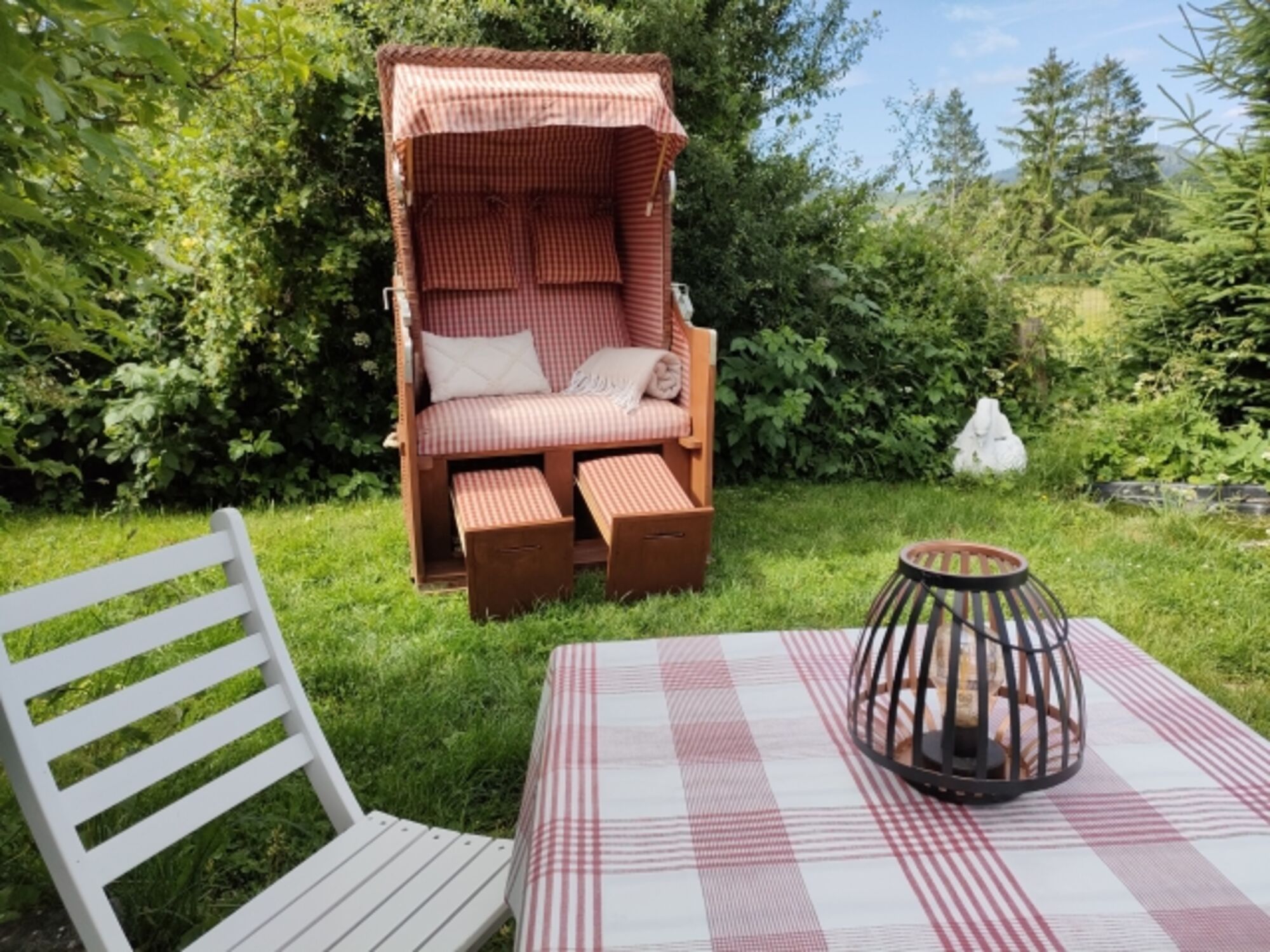 Liegewiese, Strandkorb, Gartenmöbel, Kohlegrill, Bänke, Windschutz