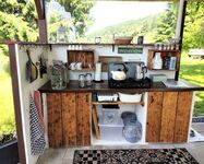 2-Platten Herd, Gasofen / Gasherd, Korkenzieher / Flaschenöffner, Gewürze (Salz, Pfeffer, Zucker), Öl / Essig, Geschirrhandtücher, Mülltüten, Essplatz in der Küche