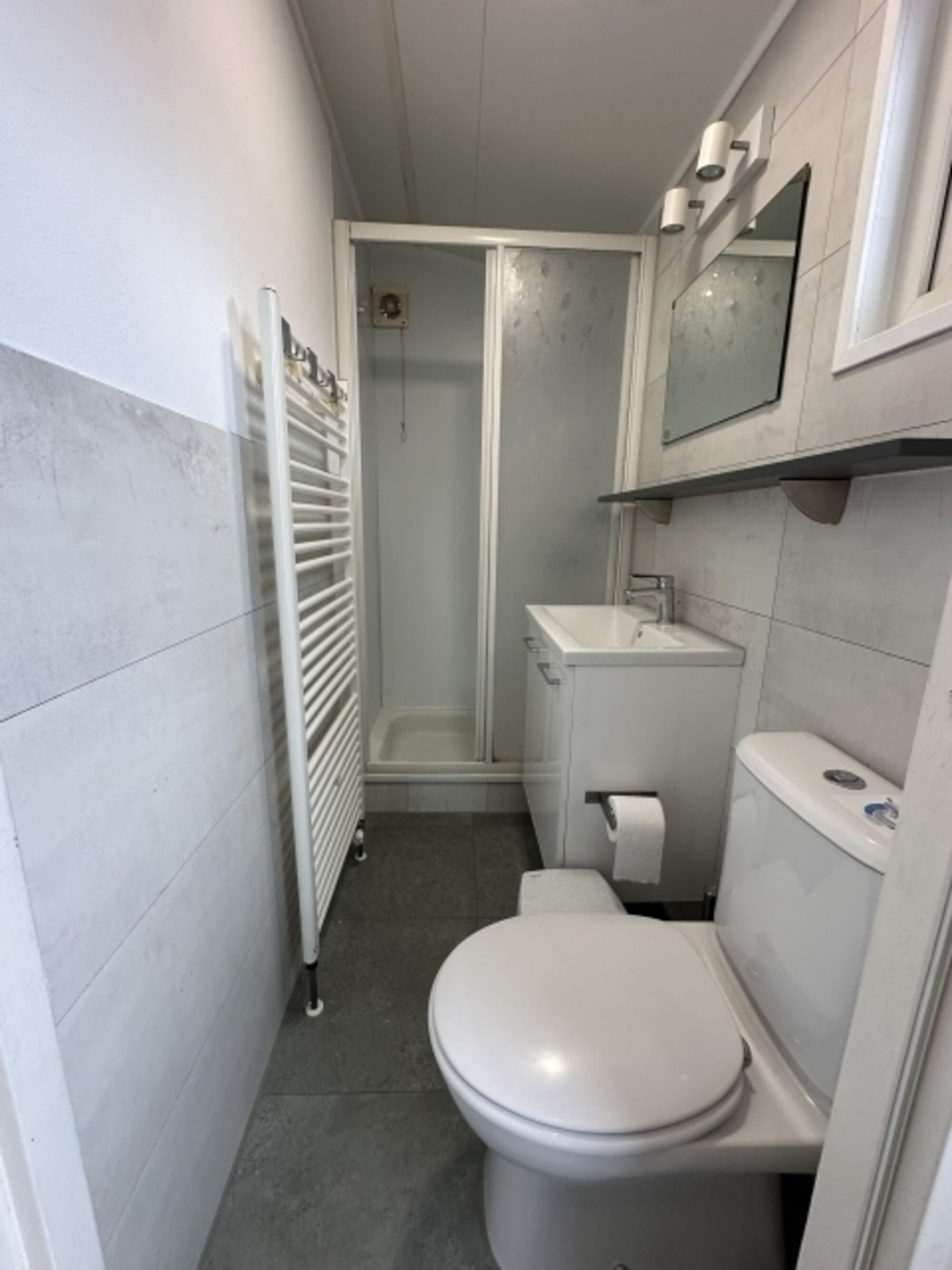 Zwei separate Schlafzimmer bieten Platz für bis zu vier Personen. Das moderne Badezimmer ist mit Dusche, WC und Fenster ausgestattet. Waschmaschine und Trockner stehen gemeinschaftlich im Park zur Verfügung.