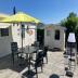 Der Außenbereich ist ein echtes Highlight: eine sonnige Terrasse mit Gartenmöbeln und Sonnenschirm lädt zum Entspannen ein. Der Blick in den Garten sorgt für Ruhe und Urlaubsgefühl pur.