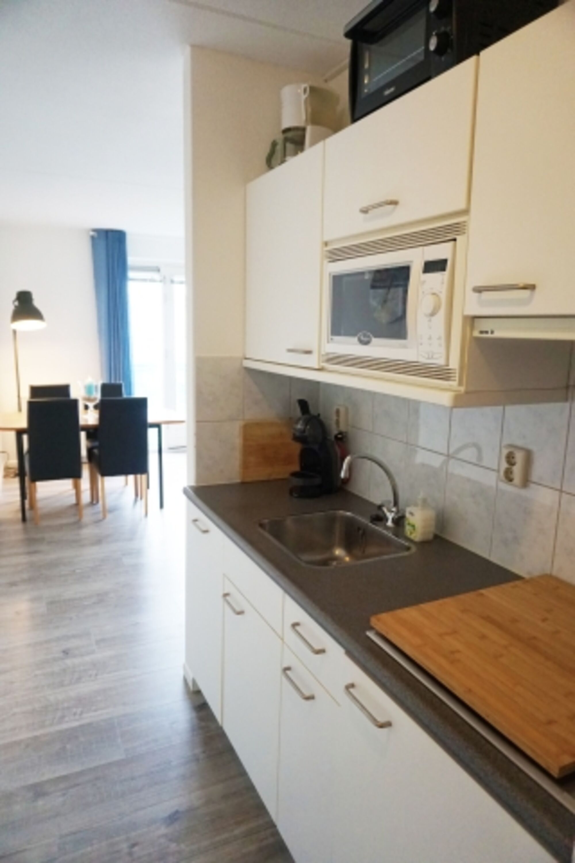 Das Appartement verfügt über ein Schlafzimmer und bietet Platz für zwei Gäste. Das Haus befindet sich im ersten Stock. Wenn Sie die Wohnung betreten, gelangen Sie durch die Küche in das stilvoll eingerichtete Wohnzimmer. Im Wohnzimmer, das mit einem Deckenventilator ausgestattet wurde, gibt es eine große Essecke und eine komfortable Sitzecke, die mit einer Eckcouch versehen wurde. Diese Eckcouch kann zu einem Schlafsofa umgebaut werden. Auf diese Weise können zwei zusätzliche Gäste im Appartement schlafen. Vom französischen Balkon aus, der sich auf der Südseite befindet, haben Sie eine tolle Aussicht auf die Dünen Julianadorps. An das Wohnzimmer grenzt die gepflegte Küche, die mit einem Geschirrspüler, einem Herd mit vier Platten, einer Dulce Gusto Kaffeemaschine und einem Kühlschrank mit Gefrierfach ausgestattet wurde. Das stimmungsvolle Schlafzimmer befindet sich vom Flur aus gesehen gleich zu Ihrer Rechten. Im Schlafzimmer steht ein Doppelbett. Das Schlafzimmer wurde mit einem Deckenventilator ausgestattet. Das daneben befindliche Badezimmer wurde mit einer Dusche, einer Toilette und einem Waschbecken versehen. Neben dem Appartementkomplex gibt es einen großen Parkplatz, auf dem Sie Ihr Auto parken können.