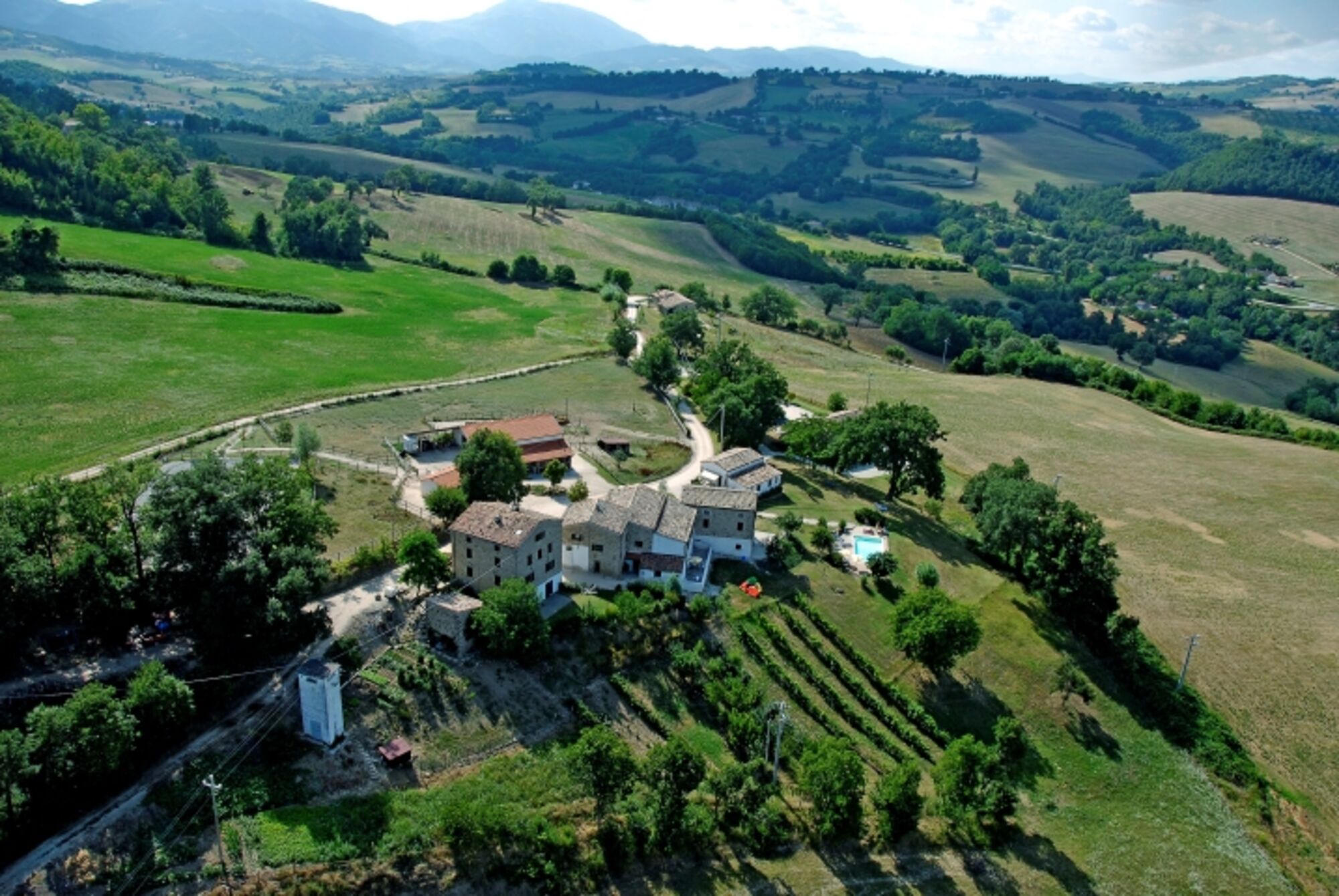 Etwa 5–6 km nach Pergola biegen Sie links Richtung Frontone ab. Nach der Brücke, in der Steigung, finden Sie unser Schild auf der rechten Straßenseite. Biegen Sie dort links ab und folgen Sie der Kiesstraße für ca. 1 km.