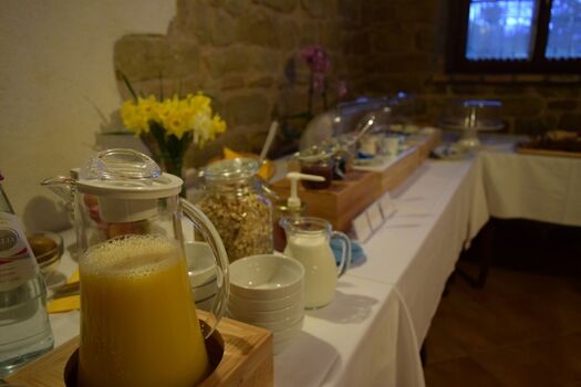 Unsere Gäste wohnen in liebevoll renovierten Ferienwohnungen für zwei bis sechs Personen oder in stilvollen Zimmern mit eigenem Bad. Jede Unterkunft verfügt über eine Küche oder ist mit Frühstück kombinierbar. Auf Wunsch bieten wir ein reichhaltiges Buffet mit hausgemachtem Brot, Marmeladen, Honig und Wurstwaren an.