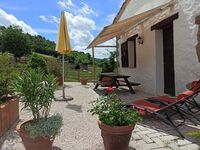 Das Schlafzimmer mit Doppelbett sorgt für erholsame Nächte, das Bad bietet alles, was man braucht. Draußen lockt ein Sitzplatz mit Blick auf den Hof und Grillmöglichkeit – perfekt für Frühstück in der Morgensonne oder ein Glas Wein am Abend.