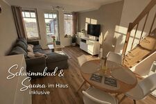 Sauna und Schwimmbad im Erdgeschoss sind inklusive, ein Fahrradkeller und eigener Parkplatz runden den Aufenthalt perfekt ab.