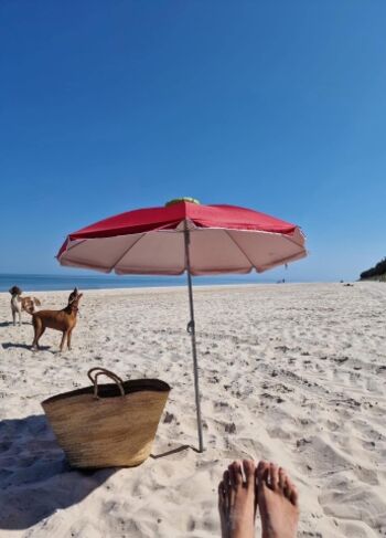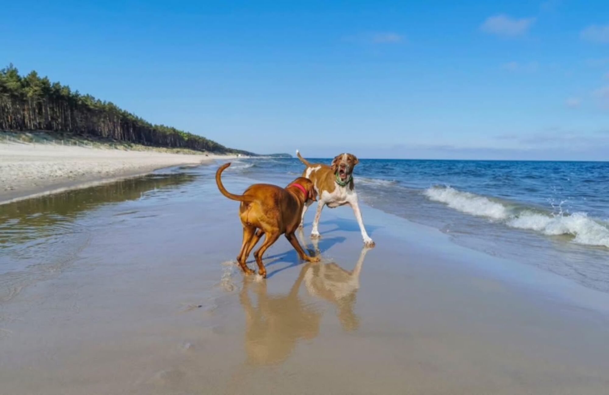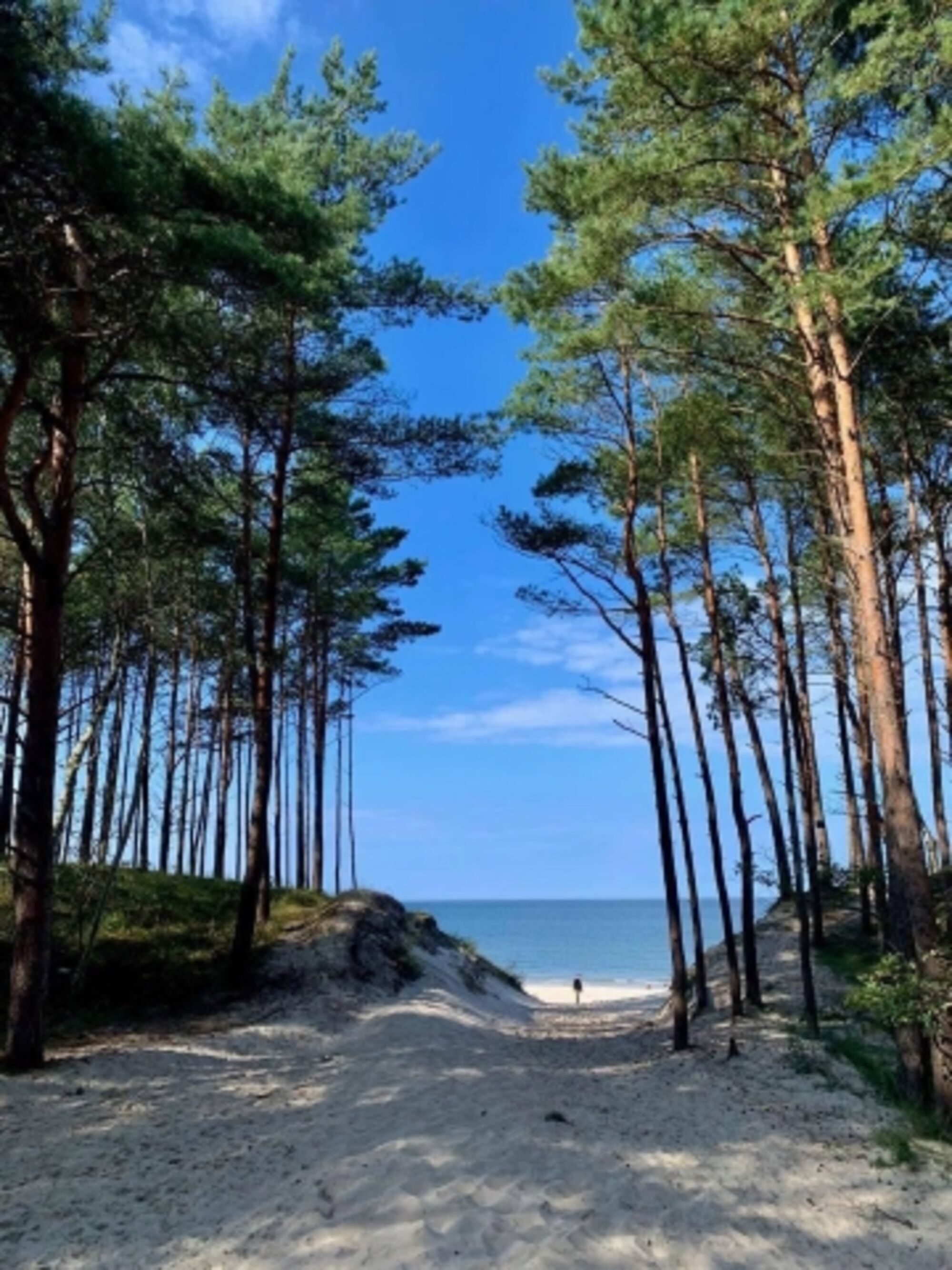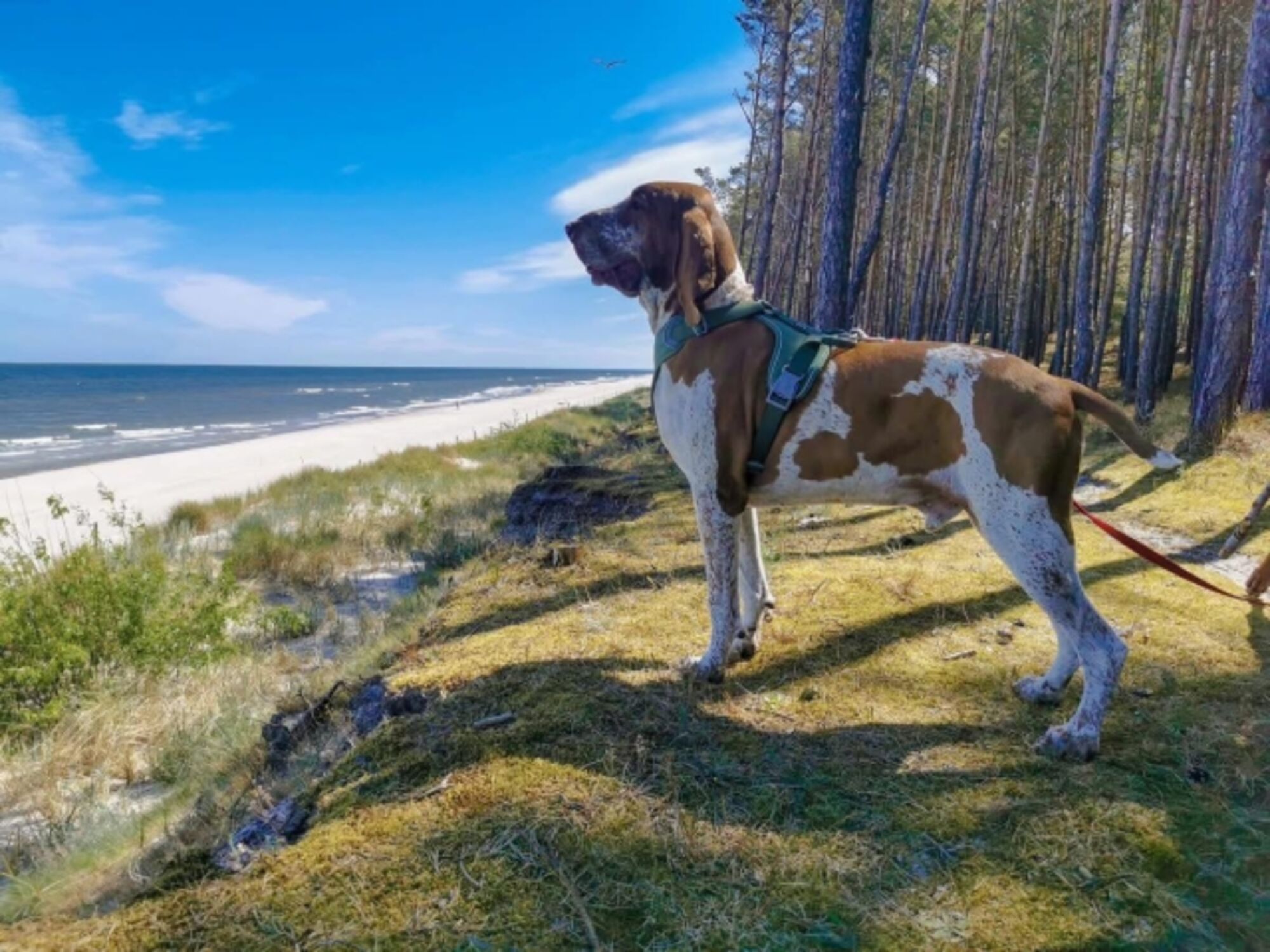 Ścieżka do morza prowadzi przez urokliwy stary las sosnowy i kończy się bezpośrednio na plaży dla psów, która w sezonie nie jest zalewana przez turystów.