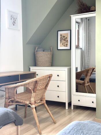 Das Ferienhaus befindet sich im ländlichen Teil von Pogorzelica, vom Garten aus hat man direkten Zugang zu wunderschönen Feldern, die sich bis ins Unendliche erstrecken. Das Meer ist ca. 2 km entfernt und über einen Waldweg zu erreichen, der zu einem Hundestrand führt, an dem es selbst im Sommer nicht überfüllt ist.