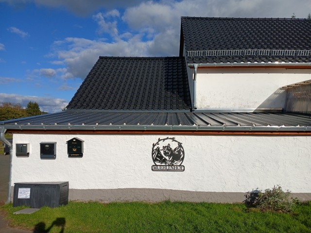 Von Köln kommend fahren Sie die A1 Richtung Trier bis zum Ende der Autobahn. Sie halten sich Richtung Blankenheim/Stadtkyll und kommen automatisch auf die B51. Die B51 fahren Sie ca. 20 Minuten. Es kommt die Ausfahrt "Gerolstein/Steffeln/Schönfeld" auf der linken Seite. Sie fahren in den Ort Schönfeld, den Berg hinunter. Unten ist eine große Bushaltestelle, hier fahren Sie links in den Mühlenweg. Der Mühlenweg wird geradeaus zur "Auf der Mühle" - leider haben wir kein eigenes Straßenschild. Unser Hof liegt kurz vor dem Wald auf der rechten Seite.