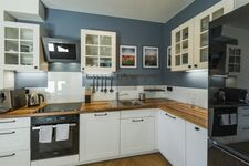 4-Platten Herd, Induktionsherd, Dunstabzugshaube, Kühlschrank mit Gefrierfach, Gefrierschrank, Kaffeevollautomat, Korkenzieher / Flaschenöffner, Gewürze (Salz, Pfeffer, Zucker), Öl / Essig, Geschirrhandtücher, Mülltüten, Essplatz in der Küche, TV in der Küche