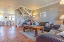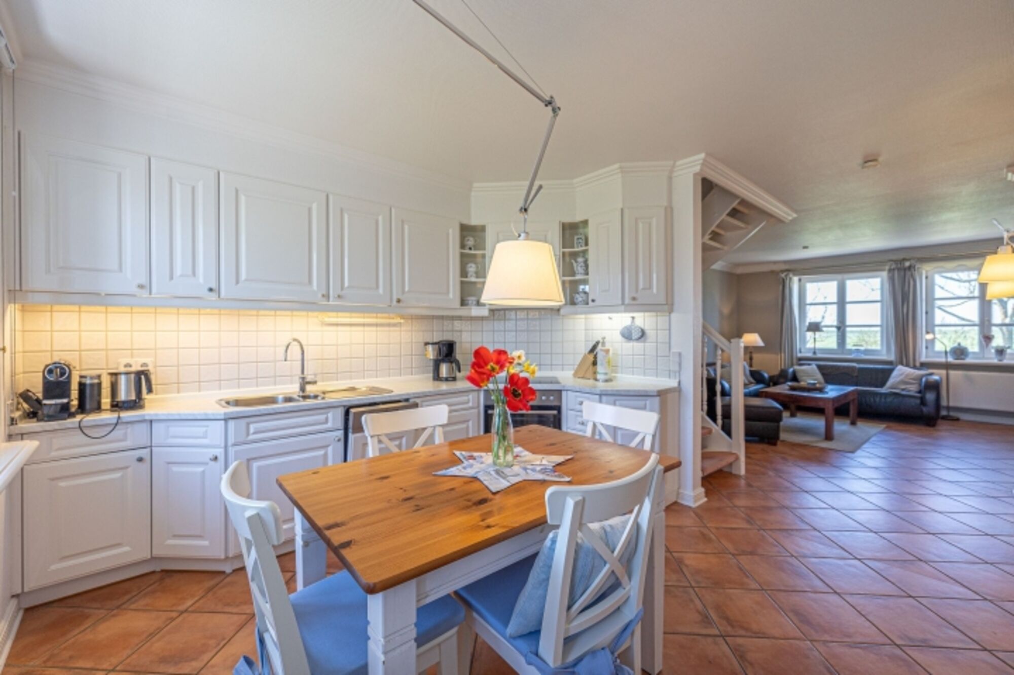 Das 110 qm große Schmuckstück empfängt Sie mit einem entzückenden Küchen- und Essbereich im Landhausstil. Selbstversorger sind in der Warft bestens aufgestellt mit Geschirrspüler, Cerankochfeld, Backofen, Mikrowelle, Wasserkocher und Co. Die Küche öffnet sich zum Wohnzimmer, wo bereits der große Fernseher und ein Lesesessel auf Sie warten.