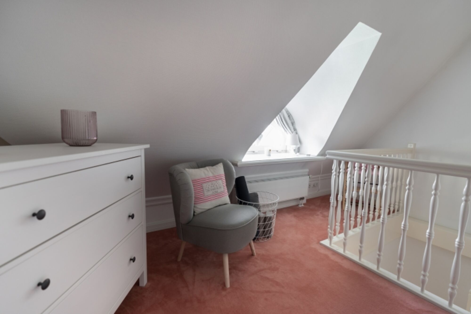 Ganz viel Privatsphäre gibt es in den oberen beiden Stockwerken: Ein Schlafzimmer ist mit Doppelbett und Kommode ausgestattet, das zweite mit einem leicht erhöhten Einzelbett und dem Kleiderschrank. Ein weiteres Einzelbett in Komforthöhe befindet sich in der heimeligen Galerie unterm Dach. Pst: Durch alle Fenster erhaschen Sie einen Blick auf das weite Land und liebevolle Details versprühen nordfriesisches Hyggegefühl.