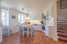 4-Platten Herd, Cerankochfeld, Dunstabzugshaube, Kühlschrank mit Gefrierfach, Tassimo-Kaffeautomat, Eierkocher, Korkenzieher / Flaschenöffner, Gewürze (Salz, Pfeffer, Zucker), Geschirrhandtücher, Mülltüten, Essplatz in der Küche