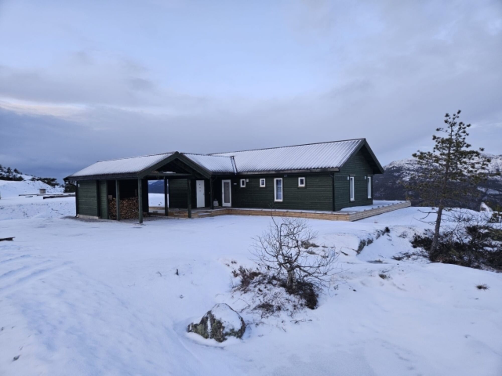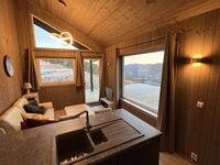 Dieses Luxus-Holzhaus aus dem Baujahr 2024 liegt auf über 660 Meter Höhe über dem Nisser-See und Vråvatn. Es bietet einen komplett freien Panorama-Blick in die wunderschöne Natur Norwegens. Manchmal wacht man morgens über den Wolken auf.