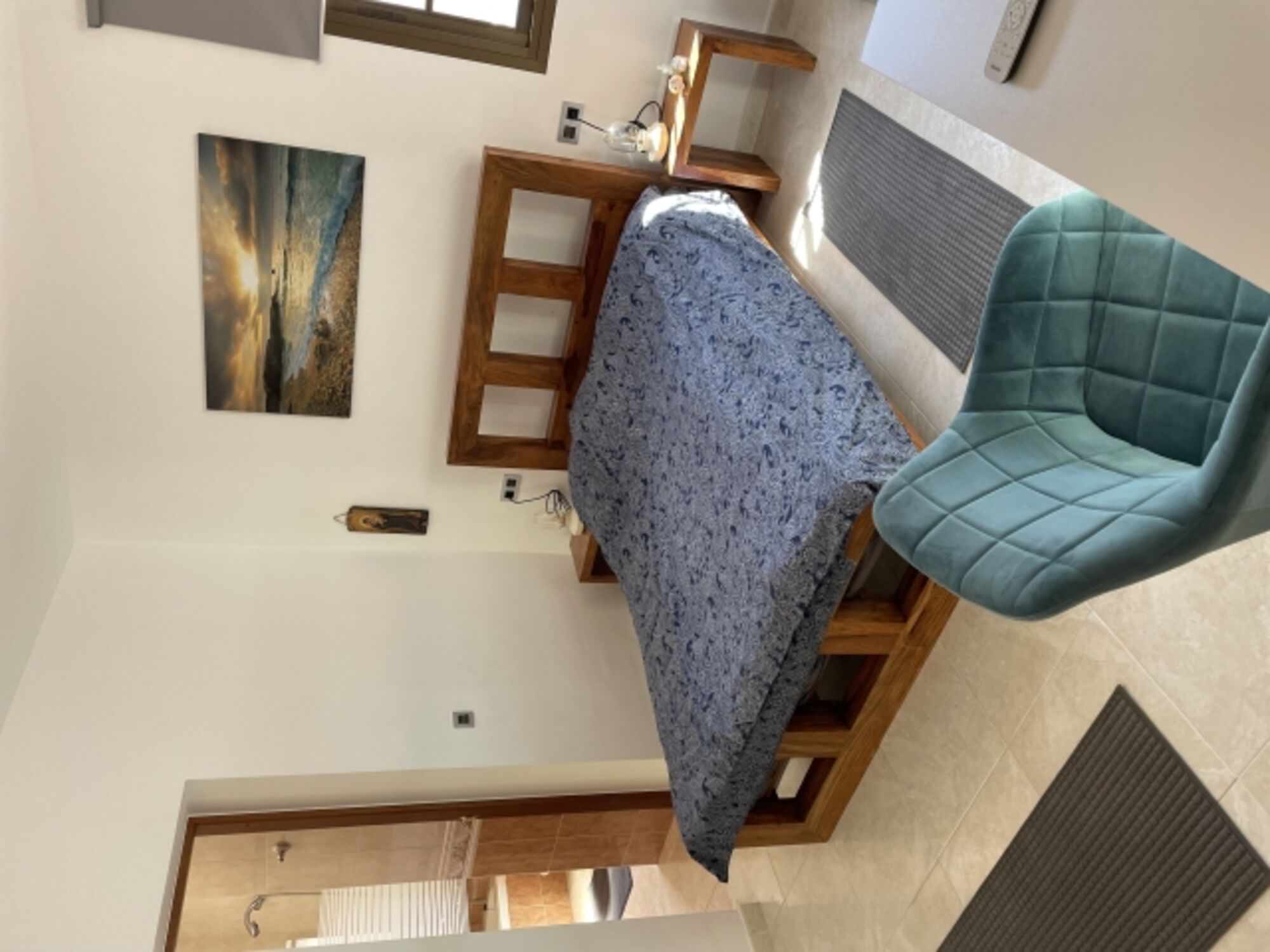 Hier gibt es auch einen Schreibtisch mit Stuhl Doppelbett 1,40 x 2,00m, Spiegel, Fliegengitter
