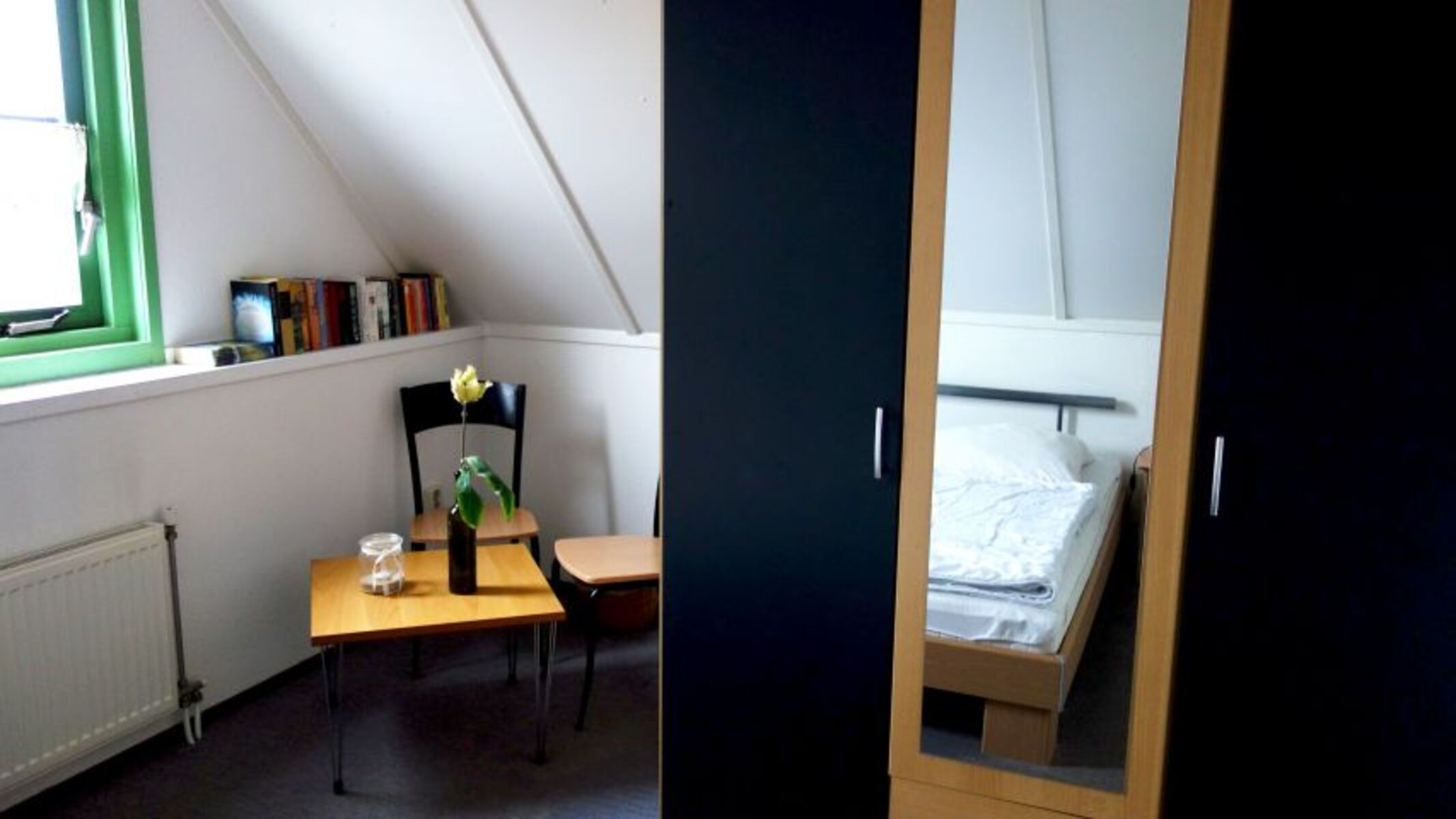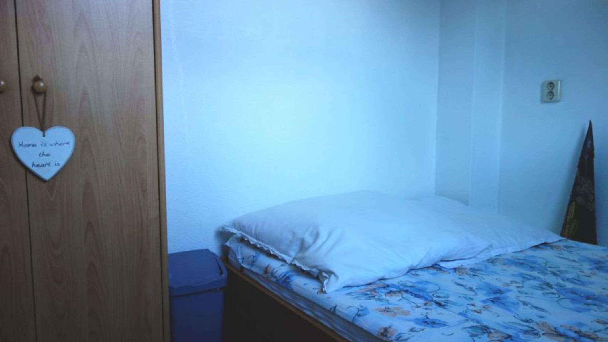 Das Bett hat eine Größe von 1,20 x 1,90m. Verdunklung durch Vorhang Bett 1,20 x 2,00m, Kommode, Leselampe am Bett