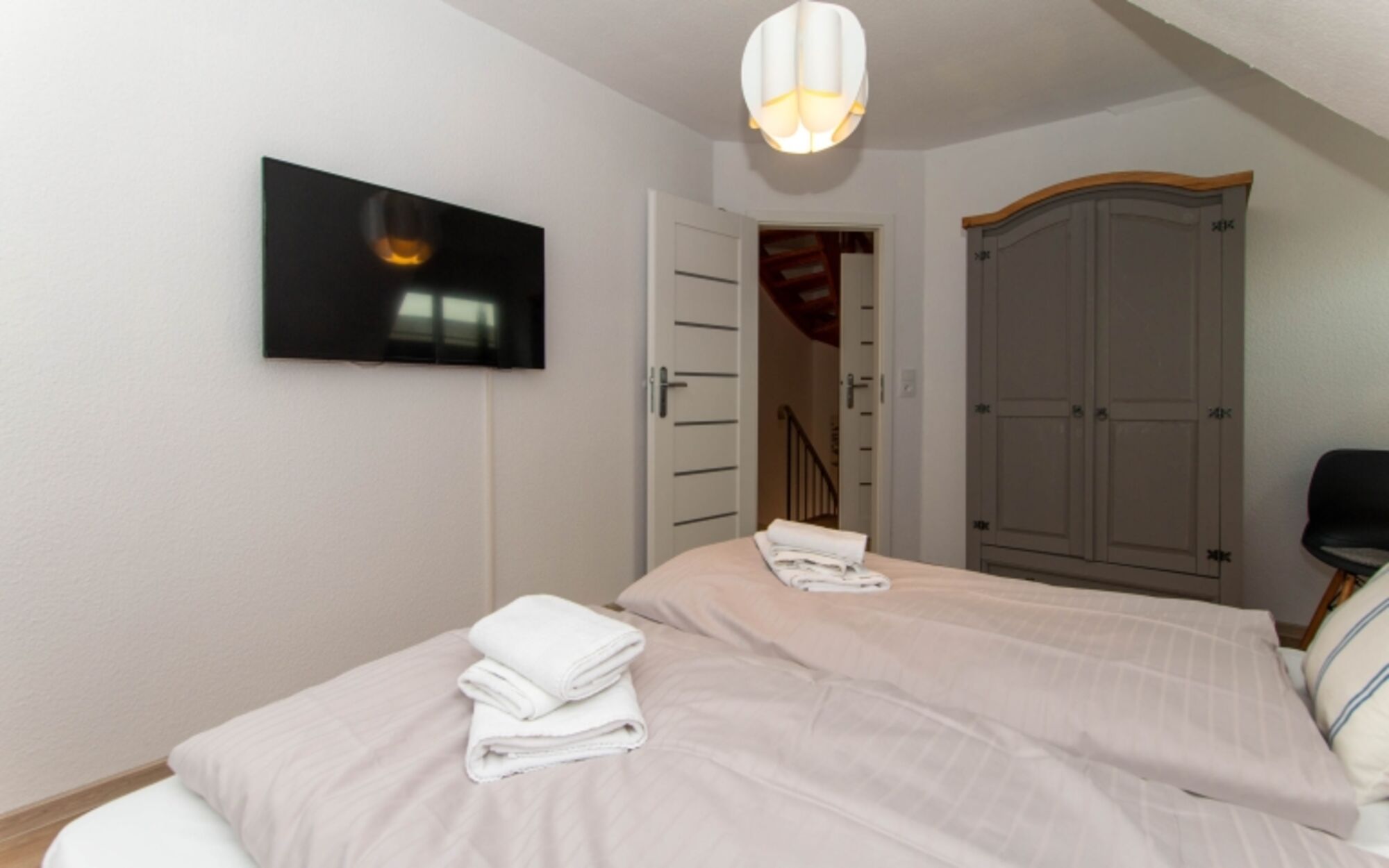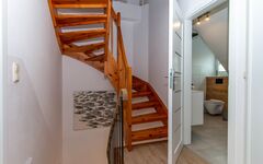 Über die beiden anderen Stockwerke verteilt, findet man ein großzügiges Wohnzimmer mit Schlafcouch und Balkon, zwei weitere Schlafzimmer, ein Duschbad und ein Gäste-WC.