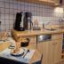 Ferner sind ein Toaster, Wasserkocher und eine Kaffeemaschine vorhanden.