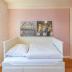 Das Lüttje Huus 1875 bietet Platz für 4 Erwachsene sowie ein Kind. Das erste Schlafzimmer verfügt über ein ausziehbares Doppelbett ( 160 x 200 ), das zweite Schlafzimmer ist mit einem Doppelbett (180 x 200 ) sowie einem Etagenbett (nur für Kinder geeignet) ausgestattet.