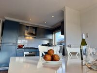 Die offene Küche ist modern und hochwertig ausgestattet: Gasherd, Backofen, Mikrowelle, Spülmaschine, Kühlschrank mit Gefrierfach, Wasserkocher und als besonderes Highlight die Philips Baristina, mit der ihr euren Kaffee wie im Lieblingscafé genießt. Der große Esstisch lädt zu gemeinsamen Mahlzeiten ein.