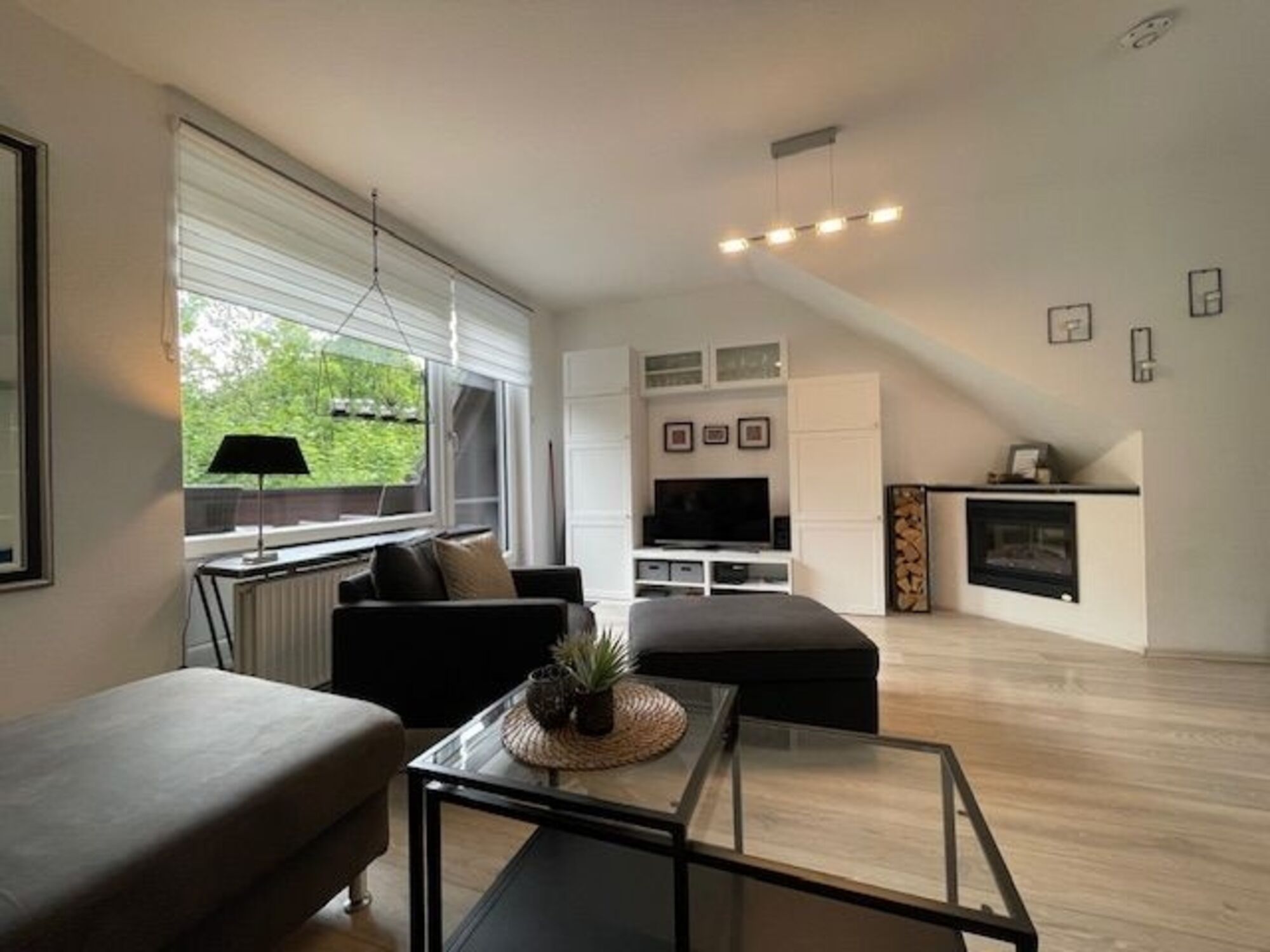 Elektrokamin Zugang zum Sonnenbalkon Fußhocker für den Sessel