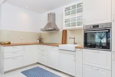 4-Platten Herd, Dunstabzugshaube, Kühlschrank mit Gefrierfach, Gefrierschrank, Nespresso-Automat, Korkenzieher / Flaschenöffner, Gewürze (Salz, Pfeffer, Zucker), Öl / Essig, Geschirrhandtücher, Mülltüten, Essplatz in der Küche