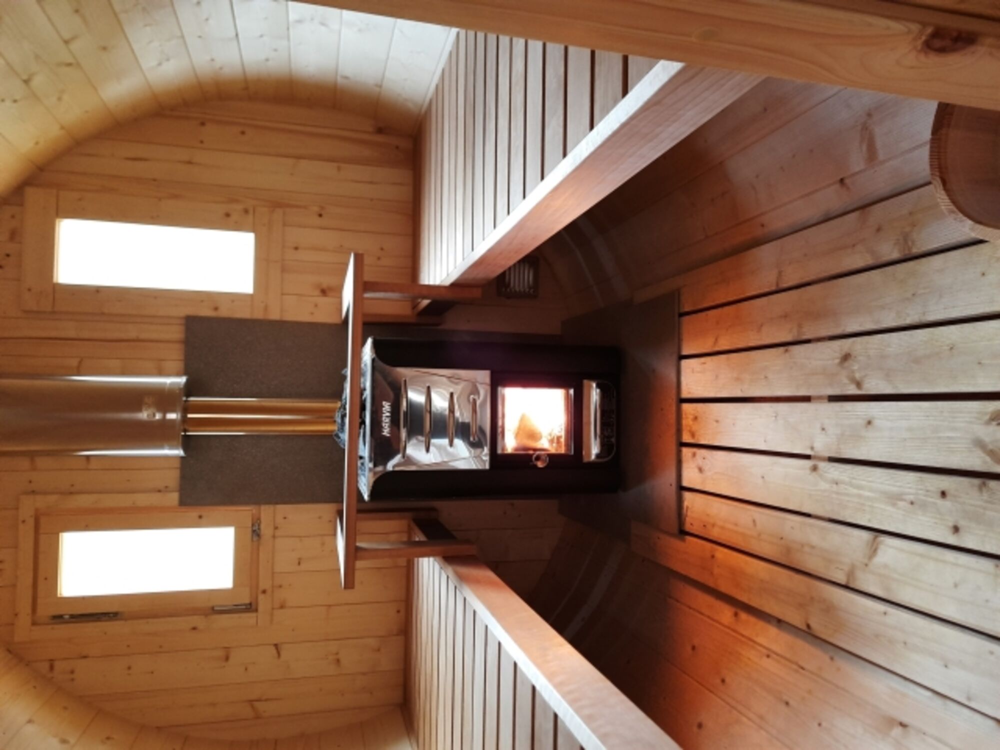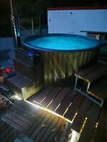 Einen großen Holz beheizten Hot Tube für 5 Personen, für pure Entspannung im warmen Wasser. Weiterhin eine Außendusche für die Erfrischung nach dem Saunagang. Im Winter Tauchfass.