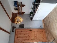 4-Platten Herd, Cerankochfeld, Dunstabzugshaube, Kühlschrank mit Gefrierfach, Gefrierschrank, Tassimo-Kaffeautomat, Eierkocher, Küchenmaschine, Mixer, Waffeleisen, Korkenzieher / Flaschenöffner, Gewürze (Salz, Pfeffer, Zucker), Geschirrhandtücher, Mülltüten, Essplatz in der Küche