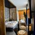 Der Schlafbereich mit komfortablem Bett und Sternenhimmel schafft eine besondere Atmosphäre für erholsame Nächte. Das Chalet ist ein Nichtraucherobjekt und auf Entspannung ausgelegt.