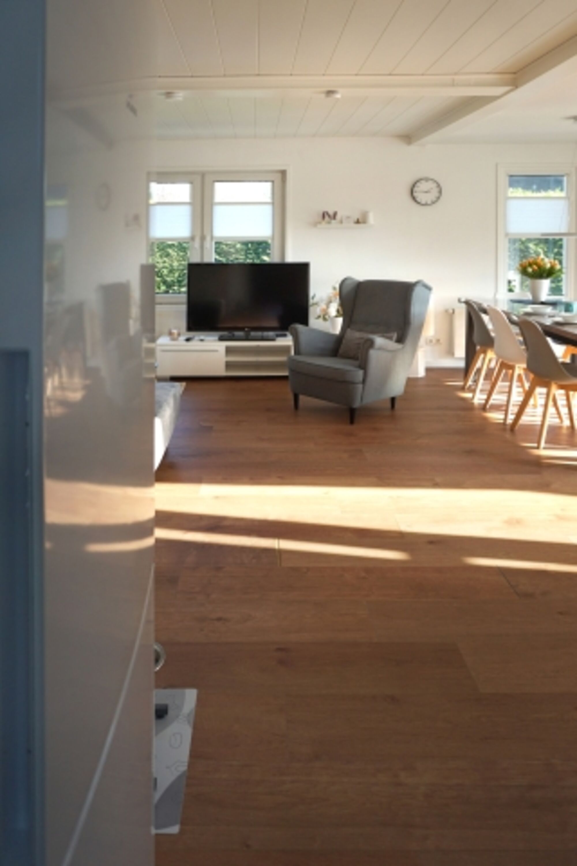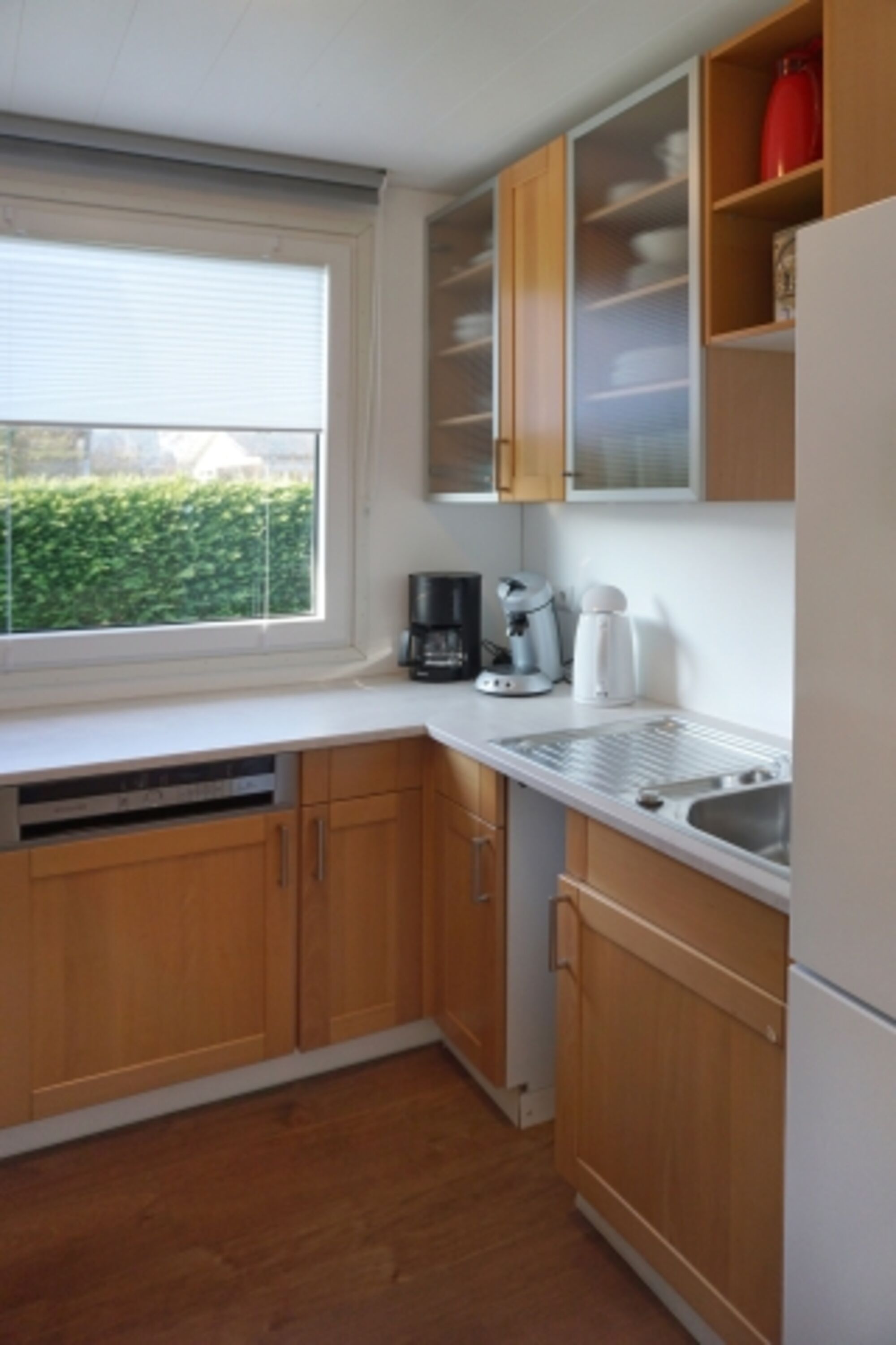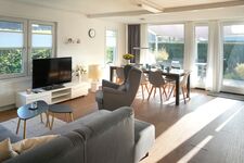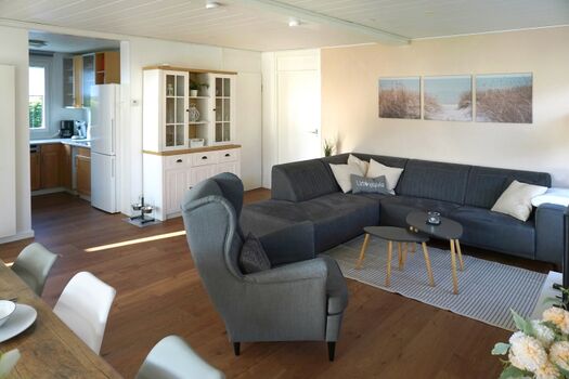 Dieses familienfreundliche Ferienhaus verfügt über ein attraktives, helles Wohnzimmer mit angrenzender Küche und gepflegtem Badezimmer. Im Wohnzimmer finden Sie eine gemütliche Sitzecke, einen Flachbildfernseher und einen großen Esstisch mit sieben Stühlen. Die halboffene Küche verfügt über einen 4-flammiger Keramikherd, einen Geschirrspüler, eine Mikrowelle, einen Backofen und eine Kühl-Gefrierkombination. Die Küche verfügt außerdem über einen Toaster, einen Wasserkocher sowie eine Senseo- und Filterkaffeemaschine. Das gepflegte Badezimmer verfügt über eine ebenerdige Dusche, Toilette und Badezimmermöbel.