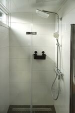 Waschbecken, Regendusche, Spiegel