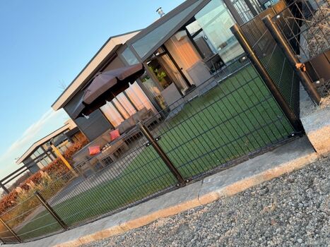Sicherheit zuerst: Das gesamte Grundstück ist komplett eingezäunt, sodass Ihre Hunde frei im Garten stöbern können.