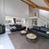 Beim Betreten gelangen Sie über den Flur in das gemütliche Wohnzimmer. Dort befindet sich eine geräumige Sitzecke mit zwei bequemen Sofas, einem gemütlichen Holzofen und einem sehr geräumigen Essbereich.
